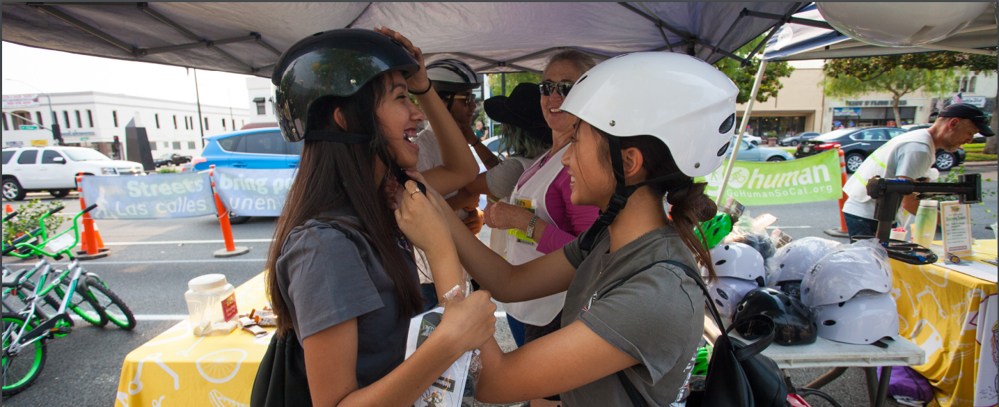 SCAG’s Go Human Kit of Parts Lending Library provides pop-up materials to temporarily demonstrate potential and planned street design improvements and safety infrastructure, including parklets, curb extensions (bulb – outs), median refuge islands, artistic crosswalks, and separated bike lanes. By showcasing these different improvements, community members get to experience and test out more complete streets that are re-designed for safety in live traffic settings.