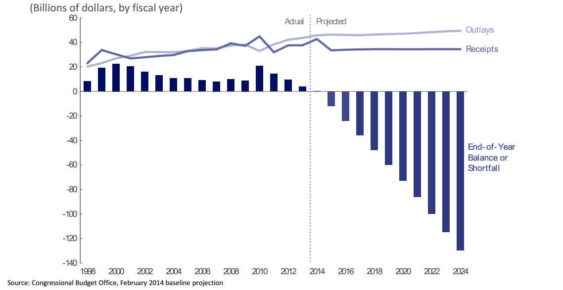 The CBO estimates that the highway account of the trust fund may have difficulty meeting all obligations during the latter half of fiscal year 2014. Additional details are available at: Testimony on the Status of the Highway Trust Fund